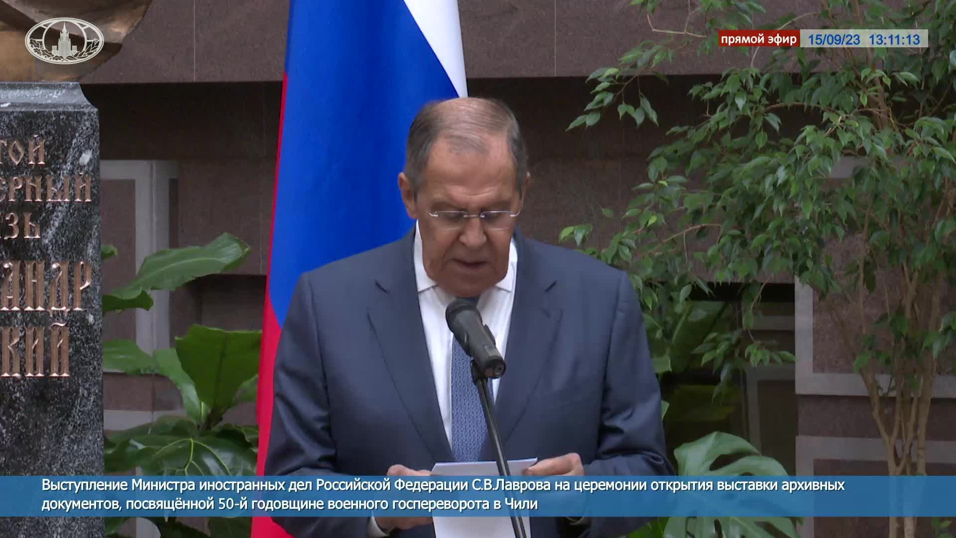 ? #ПрямойЭфир: Выступление С.В.Лаврова на церемонии открытия выставки к 50-летию переворота в Чили