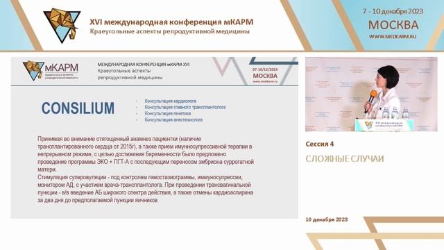 Десяткова Нина Владимировна Невозможное возможно. Проведение программы ЭКО у пациентки после трансплантации сердца Конференция КАРМ-XVI, «СЛОЖНЫЕ СЛУЧАИ», 10 декабря 2023