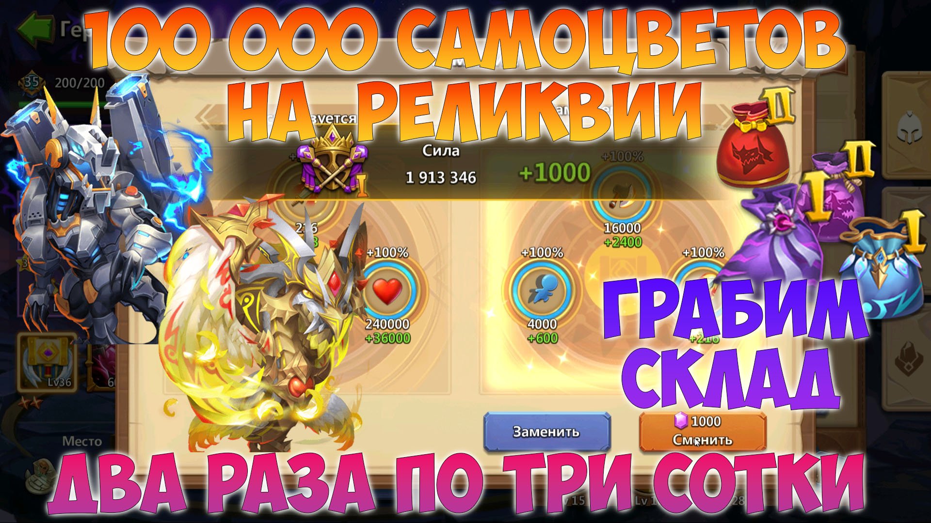100 000 САМОВ НА РЕЛИКВИИ, ГРАБИМ СКЛАД, МЕШКИ ТОП ДРАКОНОВ, Битва замков, Castle Clash