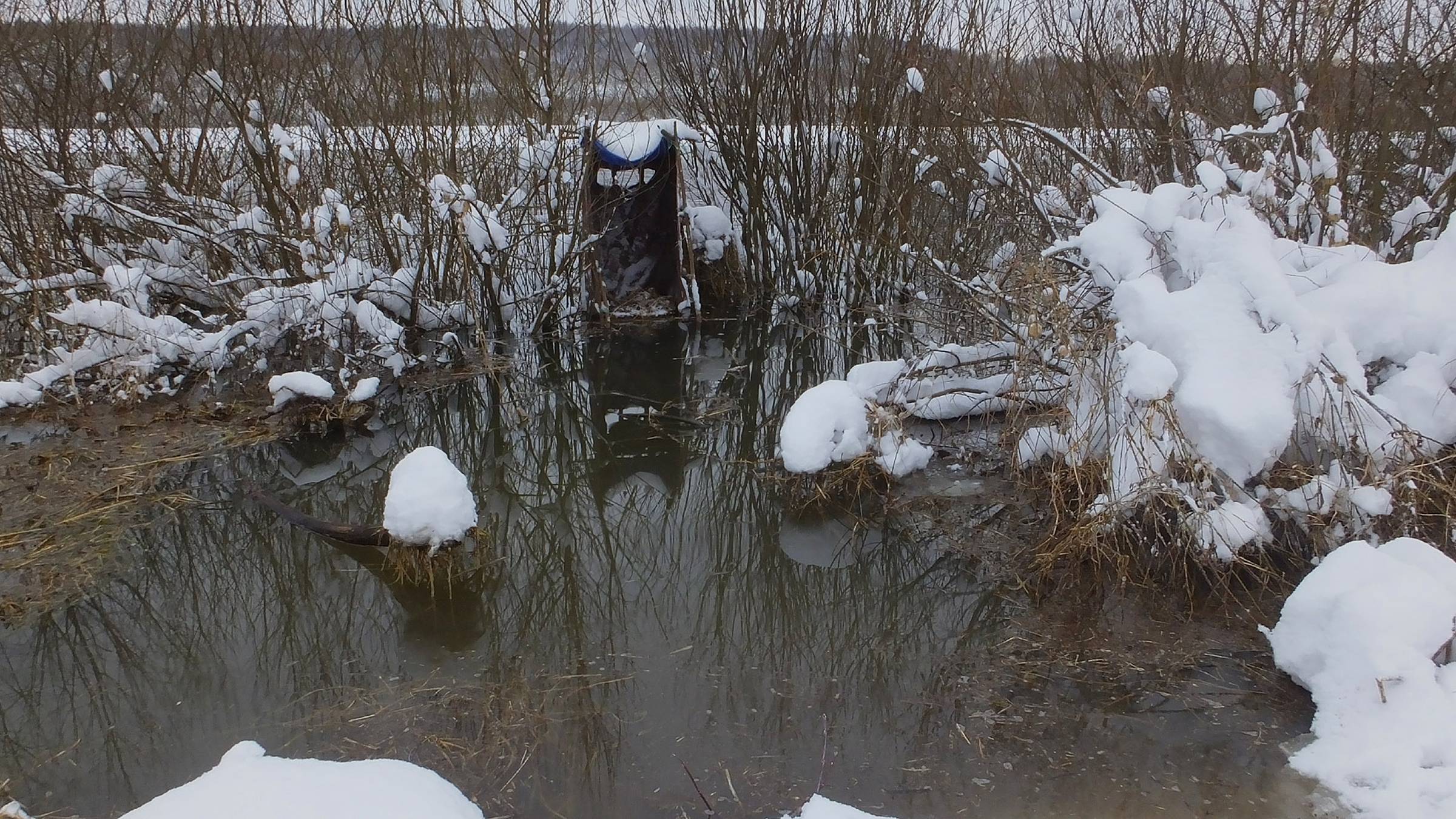 Опять природа поднесла мне подарочек. Вода за два дня поднялась больше, чем на 70 сантиметров. Вода уже на настиле. Держаться дальше за эту точку уже не вижу смысла.