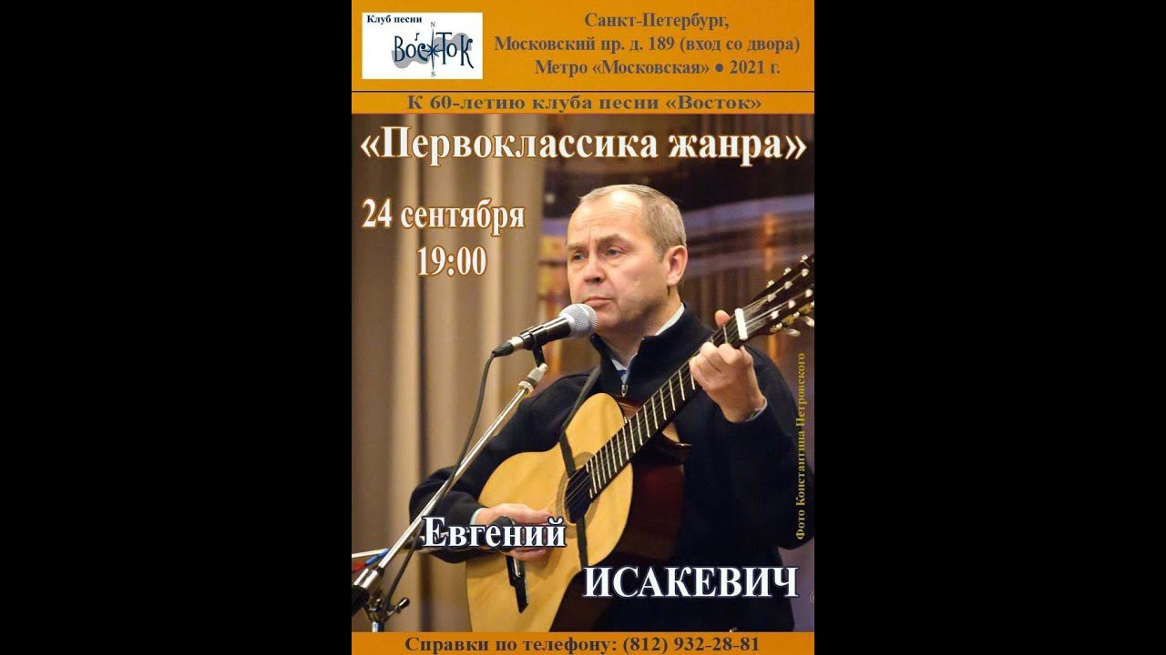 Евгений Исакевич. «Первоклассика жанра». Клуб песни «Восток». 24 сентября 2021 г. Санкт-Петербург, Московский пр., д. 189. Видеозапись и монтаж - Алла Левитан. Запись звука - Геннадий Демин. Афиша - Елена Демьянова.