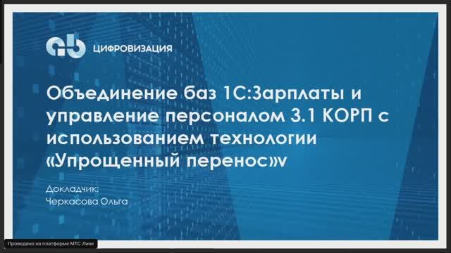 Рассказываем о применении методики, разработанной нашей компанией, которая позволяет на 30% сократить трудоёмкость работ по объединению систем «1С:Зарплата и управление персоналом» («1С:ЗУП»). Рассмотрим: 1) особенности переноса данных «Полный» и «Упрощенный», 2) в каких случаях «Полный перенос данных» НЕ работает, 3) подготовку к объединению баз, 4) объедение баз, чек-листы 5) проведение опытно-промышленной эксплуатации 01:41 – Задача объединения баз в 1С:ЗУП КОРП на примере предприятия 5,5 тысяч сотрудников 03:01 – Полный и упрощённый перенос данных 07:50 – Проблемы полного переноса и примеры конфликтов: большие объёмы данных, архитектура документов, проверка данных 12:17 – Подготовка к объединению: анализ настроек, адаптация базы источника под объединённую базу, проверка корректности расчётов, анализ настроек и др. 15:10 – Анализ настроек кадрового учёта. Основные настройки. Пример различий кадровых настроек в разных базах. Решение 17:21 – Настройки зарплаты: расчёт стоимости часа, корректировка под локальные нормативные акты организации, пример различий в пересчёте тарифной ставки и пр. 19:48 – Анализ справочников: видов рабочего времени, оснований увольнения, отпусков, графиков работы, стажей сотрудников. Определение правил переноса. Как обойти дублирование данных 21:54 – Анализ начислений и удержаний. Учёт различий в расчётах начислений одного вида. Условия для корректного переноса 23:15 – Анализ внешних печатных форм и обработок. Проверка уникальности печатных форм и обработок в базе источника и приёмника, изменение печатных форм при необходимости 24:37 – Анализ ролей и прав доступа пользователей 28:48 – Подготовка к объединению баз: рекомендации 30:40 Объединение баз и чек-листы 32:26 – Проверка переноса и проведения документов кадрового блока: нюансы 35:57 – Проверка переноса документов зарплатного блока: регламент 36:52 – Формирование ведомостей на выплату 38:02 – Проверка отражения заработной платы в учёте и правильного начисления взносов 39:14 – Опытно-промышленная эксплуатация. Примеры проблем 43:30 – Рекомендации по сверке данных ==== Проведём от экспертизы – до успешного результата. Осуществляем: 1. Внедрение продуктов «1С» от простых до самых сложных, 2. Поддержку, 3 Аутстафф (поможем найти подходящих специалистов, обучим сотрудников). Полезные статьи по особенностям 1С-автоматизации: https://aibcifra.ru/category/news/ Позвонить: +7 (495) 120-40-02 Написать: info@aibcifra.pro ➡️ Сайт: https://aibcifra.ru/ ➡️ Телеграм: https://t.me/aibcifra/ ➡️ ВКонтакте: https://vk.com/aibcifra/ ➡️ Дзен: https://dzen.ru/aibcifra/ ➡️ Rutube: https://rutube.ru/channel/42989283/about/ ➡️ YT: https://www.youtube.com/@chestno_pro_1C_ERP/ #аибцифровизация #1СЗУП #1СЗУПКОРП #объединениебаз #объединениебаз1СЗУП #упрощённыйперенос #полныйперенос @aibcifra
