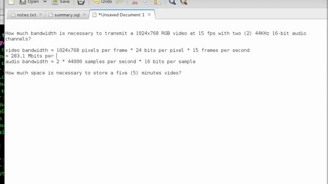 Sample computation for CS 154. Here is an example bandwidth and storage requirements computation for a video. WARNING: No post processing done.