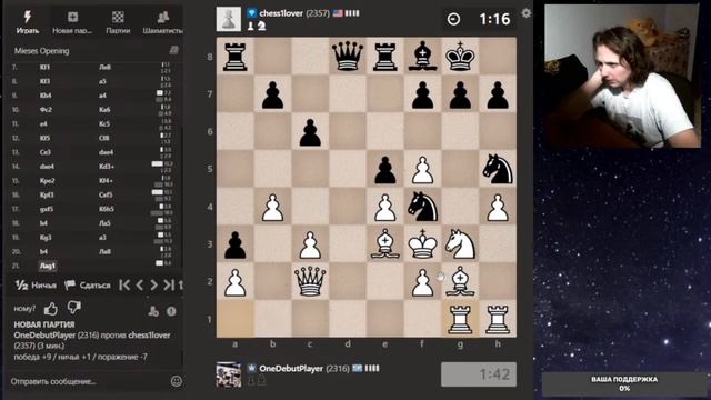 Друзья, всем привет. Партия со стрима, представляю вашему вниманию. Шахматы. Блиц 3+0 на chess.com. Если интересно, - подписывайтесь на канал, ставьте лайки, оставляйте комментарии. Поддержка через: DonationAlerts: https://www.donationalerts.com/r/onedebutplayer Бусти: https://boosty.to/onedebutplayer/donate Donatepay: https://new.donatepay.ru/@1272445