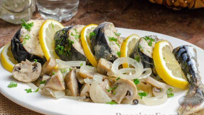 Скумбрия в горячем маринаде, с грибами, получается очень ароматной и вкусной. Ваших усилий понадобится минимум, а результат - просто супер. Рыбка получается нежной, сочной, с ароматными грибочками и луком. #ЗакускиИзРыбы #МаринадДляСкумбрии #ХолодныеЗакуски