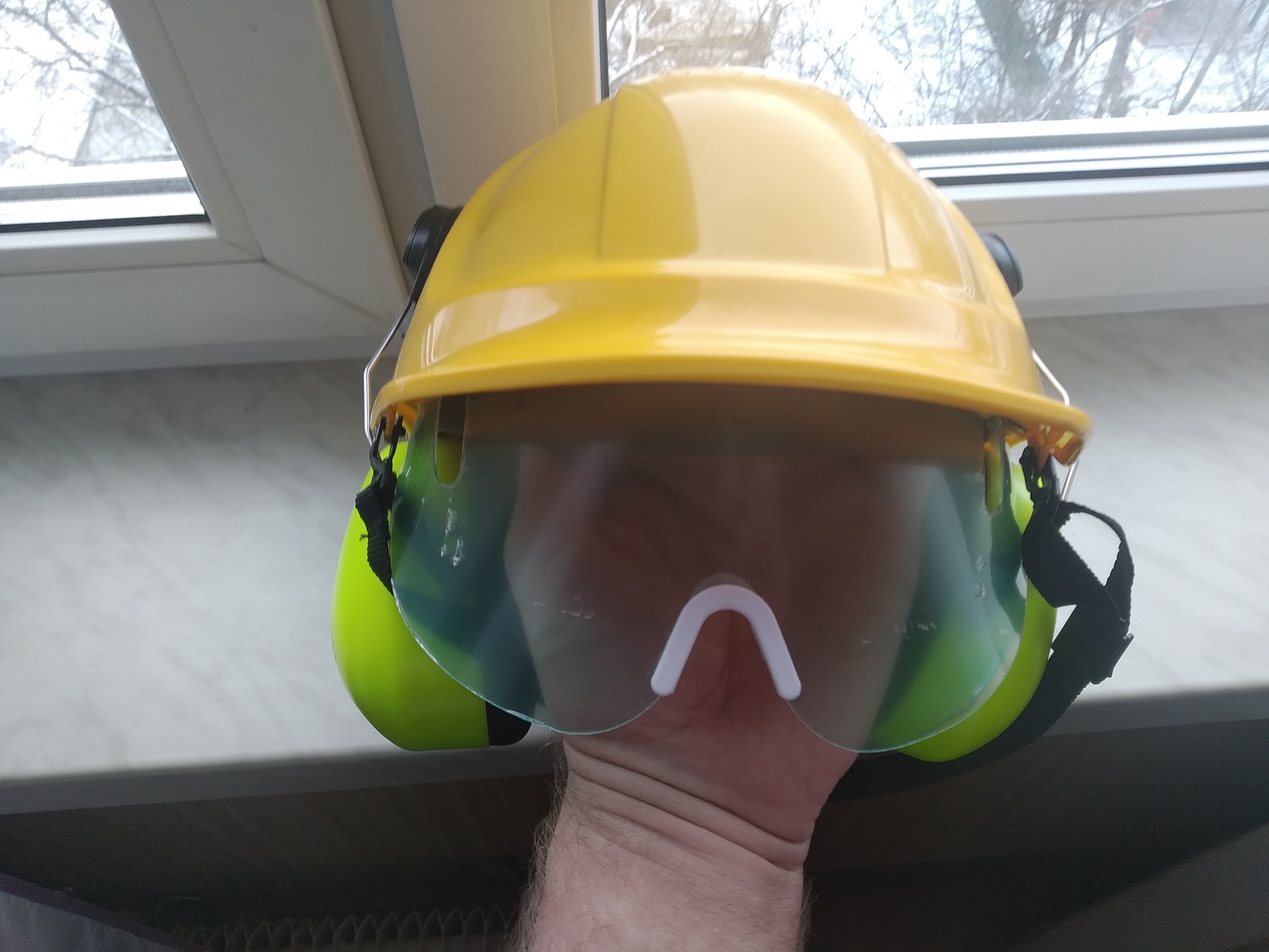 Защитная каска и наушники