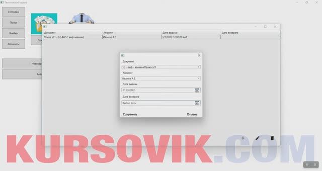 https://kursovik.com/programming/101450320.html АИС «Архив предприятия» Автоматизированная Информационная Система. Среда разработки: Visual Studio. Технология разработки: WPF. Среда программирования: Visual C# .NET 2020. База данных: MS SQL Server 2014. Архив содержит стеллажи, полки, в которых хранится документация. Функцией архива входят прием документов на хранение, управление ими, поиск по атрибутам, организация доступа к электронным файлам и бумажным оригиналам и учет их выдачи. В зависимости от сроков хранения документы подразделяются на три описи и имеют номер дела. Приложение должно предоставлять пользователю возможность выполнять следующие действия: • принять на хранение сформированный документ; • найти его по атрибутам; • найти где на каком стеллаже; • при необходимости выдать сотруднику и получить назад; • уничтожить. Приобрести исходники (все файлы проекта) данной программы Вы можете, заполнив следующую форму: https://kursovik.com/programming/101450320.html?camefrom=rutube#form Задать вопрос автору: https://kursovik.com/programming/101450320.html?camefrom=rutube#vopros Заказать отчёт(описание): https://kursovik.com/programming/101450320.html?camefrom=rutube#pz_need Заказать модификацию программы: https://kursovik.com/uniform.html?modify=101450320&camefrom=rutube Заказать новую программу (с чистого листа): https://kursovik.com/programming_order.html?camefrom=rutube Наш Телеграм-БОТ для поиска готовых работ по программированию https://t.me/kursovikcom_bot , в нашей базе более 5-ти тысяч готовых работ, для более эффективного поиска используйте наш Телеграм-БОТ. Список наших готовых работ по программированию: https://kursovik.com/progtopic.html Разработка программ на заказ согласно Вашему заданию: https://kursovik.com/programming_order.html Мы пишем программы практически на всех языках программирования, работаем с различными базами данных, выполняем как мелкие задачки, так и крупные проекты. Разрабатываем и запускаем в работу ЧАТ-БОТы. Обращайтесь - всегда будем рады Вам помочь! Если нужно переписать данную программу на другой язык программирования - обращайтесь - сделаем. Адрес нашего сайта: https://kursovik.com Наши контакты: https://kursovik.com/contacts.html Наша группа ВК: https://vk.com/kursovik (всем подписчикам скидка 5%) Наш Телеграм-канал: https://t.me/kursovik (всем подписчикам скидка 5%) Наш Дзен-канал: https://dzen.ru/kursovik (всем подписчикам скидка 5%) Наш RuTube-канал: https://rutube.ru/channel/41864889 (всем подписчикам скидка 5%) Наш YouTube-канал: https://youtube.com/@kursovik_com (всем подписчикам скидка 5%) (скидка предоставляется на работы, выполняемые нашим сайтом на заказ (написание работы с чистого листа), скидки не суммируются :) #программирование #visualstudio #mssqlserver