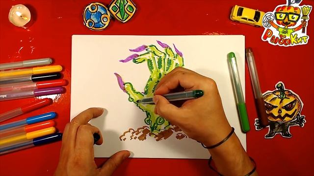 Зеленая страшная РУКА - рисуем фломастером