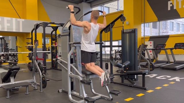 Подробнее: @https://play.google.com/store/apps/details?id=com.nla.personalfitnesstrainer Техника выполнения: ⁃ Фиксируемся в тренажёре; ⁃ Удерживаем таз в нейтральном положении. Не выводим его вперёд и не отводим назад; ⁃ На выдохе выполняем подъём вверх, стремясь грудью к перекладине; ⁃ На вдохе опускаемся вниз