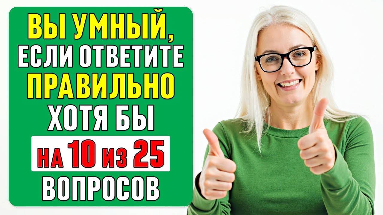 Проверьте Себя! 🔥 Этот тест — увлекательный способ оценить свежесть вашего мышления и широту кругозора. Вам предстоит ответить на 25 вопросов из разных сфер знаний, которые покажут, насколько гибок и молод ваш ум. ✅ Пройдите тест и узнайте свой результат! ✅ Обязательно напишите в комментариях, сколько баллов вы набрали! ✅ Подписывайтесь на канал, чтобы не пропустить новые интересные тесты! #тестнаэрудицию #проверьсебя #интеллектуальныйвызов #эрудиция #кругозор