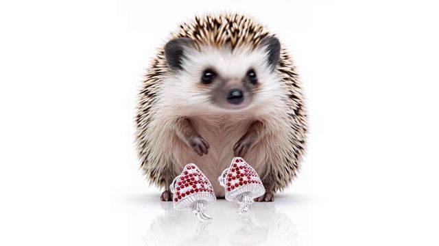 Пусеты Roman Nikonov "Чудесные грибы" из белого золота 750-й пробы с бриллиантами и рубинами