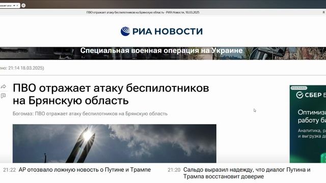ПВО отражает атаку беспилотников на Брянскую область