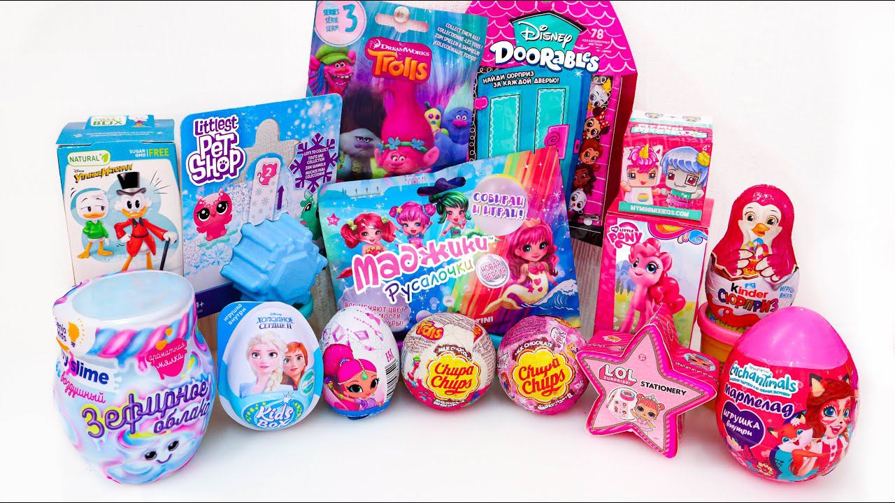 Собрала 15 РОЗОВО-ГОЛУБЫХ Сюрпризов ЛОЛ Холодное Сердце СЛАЙМЫ ЛПС Тролли