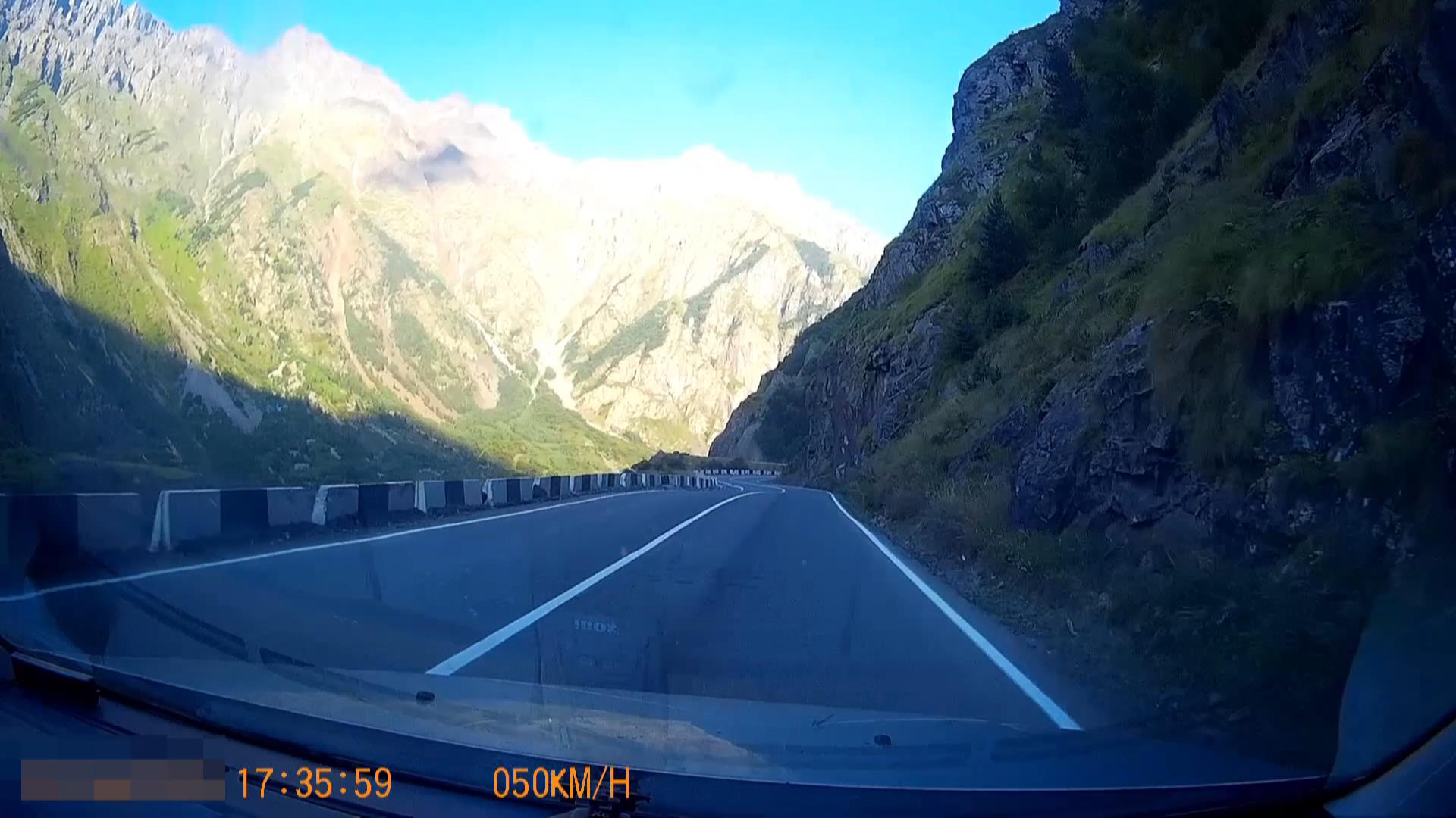 Едем по военно-грузинской дороге от грузинского КПП до поселка Степанцминда, бывший Казбеги. Красивый вид на гору Казбек и самый высокий в Европе храм Святой Троицы.