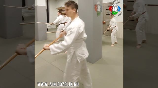 фрагмент тренировки. Отработка ката (набор последовательных движений) с дзё (посох).
