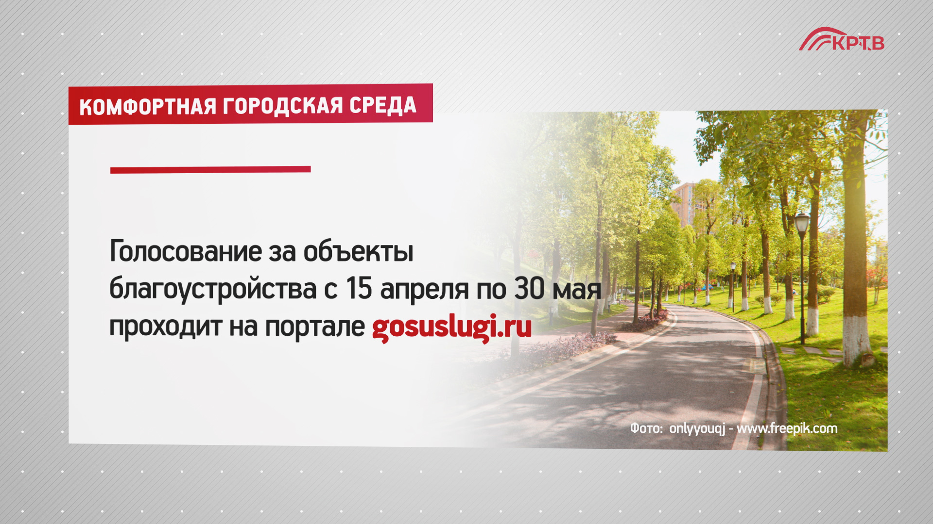 В рамках федерального проекта до 30 мая включительно на портале «Госуслуги» жители Красногорска могут проголосовать за один из трёх объектов, предлагаемых к благоустройству.
