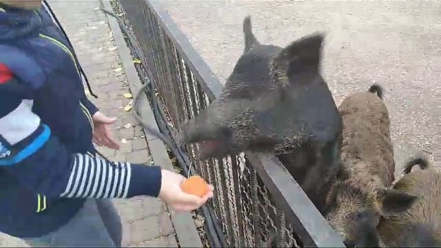 Огромные кабаны в парке Львов Тайган.Кормлю кабанчика ?