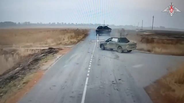 Суджанском районе Курской области. Расчет БПЛА российских десантников обнаружил украинский танк на шоссе в сопровождении пикапа с комплексом РЭБ. Точным ударом, облетев пикап ВСУ, оператор FPV-дрона поразил и уничтожил танк ВСУ. В результате поражения у танка сдетонировал и взорвался боекомплект. Вторым беспилотником был уничтожен пикап ВСУ с водителем и пассажирами. @mod_russia #СВО #война #всу #дрон
