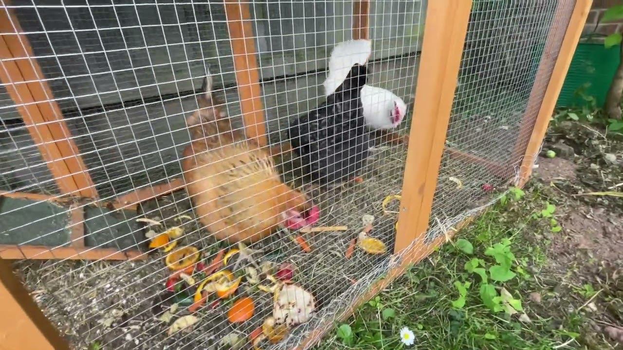 Garden Chicken Coop UK - Pets Imperial Chicken Coop - Eating left over food #chickens #chickencoop #ukchickencoop #chickencoopuk #petsimperial #chickensuk #smallgardenchickens #freerangechickens #backyardchickens #smallholdingchickens
