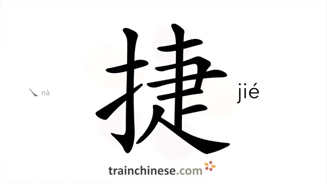 捷 (jié) fast, quick, prompt; victory, triumph; nimble