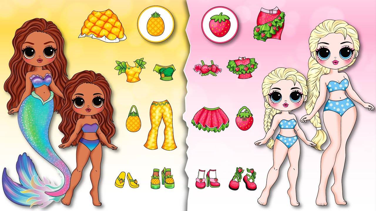 Эльза и Анна Фрозен, Божья коровка, В среду устраивают модные пляжные вечеринки своими руками, Бумажные куклы и поделки