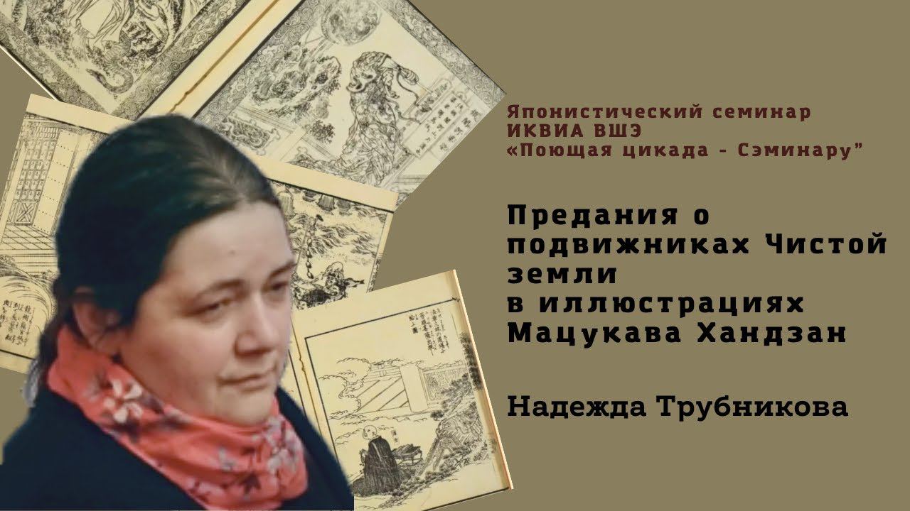 Запись Японистического семинара ИКВИА ВШЭ «Поющая цикада - Сэминару” от 12.10.2021 Лекция доктора исторических наук Н.Трубниковой «Предания о подвижниках Чистой Земли в иллюстрациях Мацукава Хандзан». 00:06 Введение. 01:30 Доклад Н.Н.Трубниковой «Предания о подвижниках Чистой Земли в иллюстрациях Мацукава Хандзан». 44:42 Обсуждение и комментарии. 58:36 Разное, объявления.