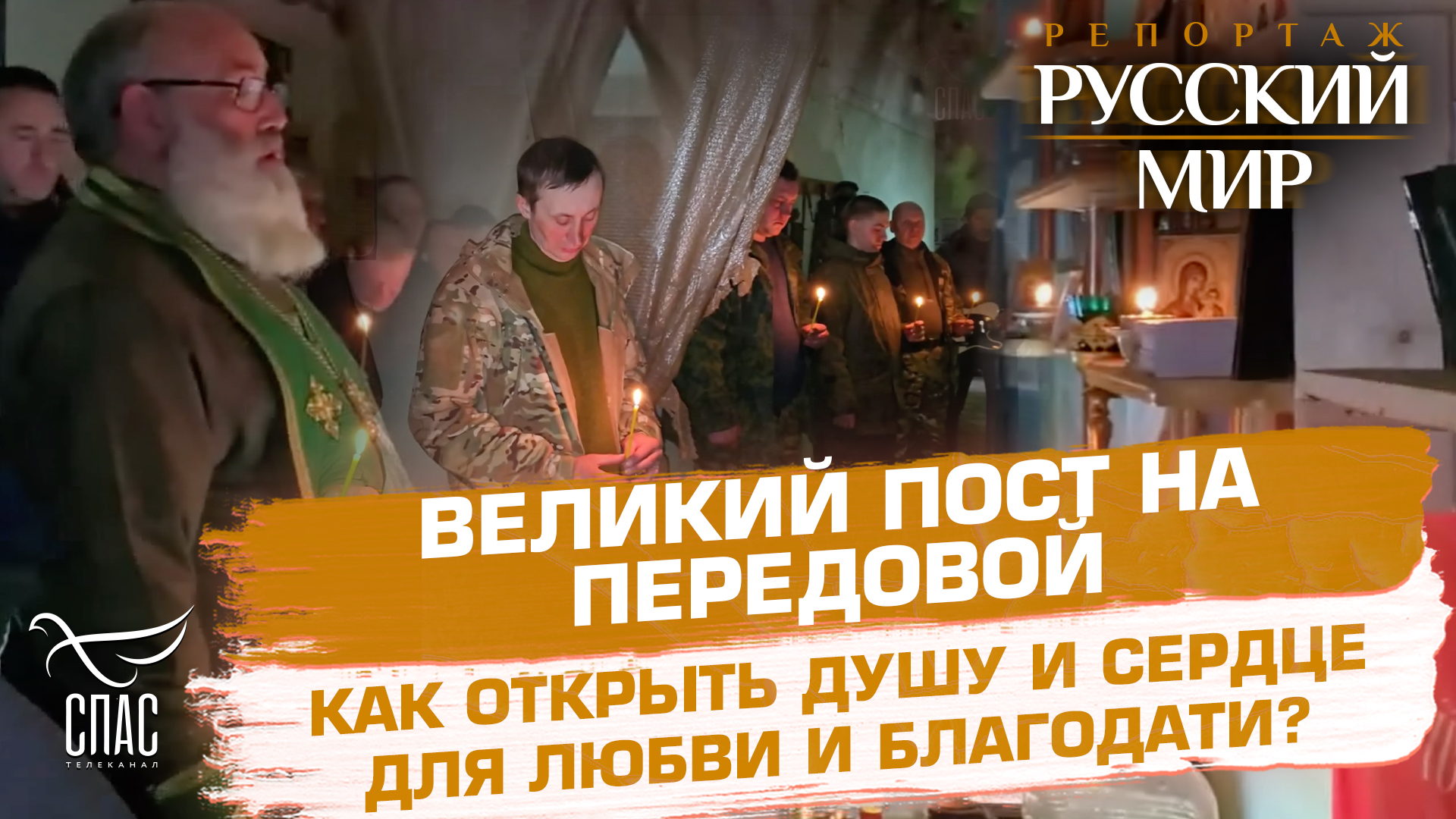 📌 В первую неделю Великого поста каждый христианин обязательно старается найти возможность посетить службы, где читается Покаянный канон Андрея Критского. Но далеко не все могут провести эти святые дни в тишине храма или домашнем комфорте. 📌 О том, как сохранить веру и мужество в экстремальных фронтовых условиях - узнаем из специального репортажа Анны Куринной. 🌏 Программа РУССКИЙ МИР с Андреем Афанасьевым. Это не про политику, это про каждого из нас! Каждую субботу на телеканале СПАС Мы говорим о Боге и помогаем обрести Его тем, кто Его ищет. Поддержите нас, пожалуйста: https://help.spastv.ru