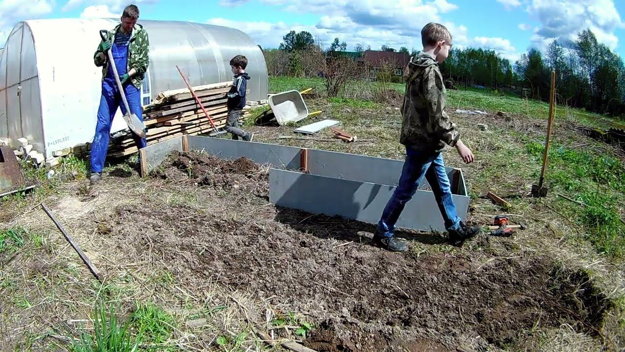 В 2022 году стали осваивать земельный участок на котором был заброшенный огород. Было решено сделать высокие грядки в парнике из плоского шифера на небольшом огородике для большей урожайности. К нашему счастью парник не требовал ремонта, только нужно было убрать сорняки. Процесс получился достаточно интересный и веселый.