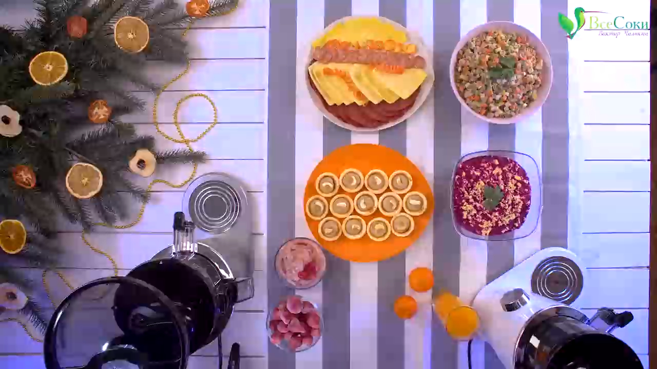 Поздравляем наших дорогих подписчиков с Новым годом! От всего сердца желаем здоровья, долголетия и отличного самочувствия! На этот Новый год мы украсили ёлочку сушёными фруктами и приготовили веганские вариации классических закусок: - Оливье с веганской докторской колбасой под сыроедческим майонезом из семечек подсолнечника; - Селёдка под шубой без селёдки (её заменяют чипсы из морской капусты); - Крем-паштет из авокадо и кешью в тарталетках; - Нарезка веганских сыра и колбасы. Подробные рецепты, ингредиенты и ход приготовления ждут вас в видеоролике! Видеоролик от 29.12.2018 Замена обычных блюд веганскими альтернативами сделает застолье более лёгким и полезным, поможет избежать тяжести в животе и других симптомов переедания, хорошо скажется на фигуре. Такие блюда подойдут всем гостям вне зависимости от типа питания: и вегетарианцам, и веганам, и постящимся. На десерт мы приготовили долгоиграющий натуральный сорбет из замороженных банана и клубники, а также свежевыжатый мандариновый сок. За эти блюда отвечала наша любимая корейская соковыжималка Hurom H-100, инновационный бесшумный аппарат без сетки. Со всем, что нужно было измельчить, прекрасно справился красавец L'equip BS5 Cube Ruby – рубиновый блендер из лимитированной коллекции, приехавший к нам недавно прямиком из Южной Кореи. Весёлые гирлянды из моркови появились на нашем столе благодаря домашней спиралерезке Konstar. В очистке и нарезке ингредиентов помогли и другие дизайнерские гаджеты для кухни Konstar из Гонконга. Приятного аппетита и до новых встреч в 2019 году! НОВИНКА! Шнековая соковыжималка Hurom Н-100 без сетки в белоснежном корпусе: http://vsesoki.ru/collection/sokovyzhimalki-HUROM/product/sokovyzhimalka-hurom-h-100-sbea01-4-pokolenie-belyy?rtube Шнековая соковыжималка Hurom Н-100 без сетки в серебристом корпусе: http://vsesoki.ru/collection/sokovyzhimalki-HUROM/product/sokovyzhimalka-hurom-h-100-4-pokolenie-platinovyy-serebristyy?rtube Шнековая соковыжималка Hurom Н-100 без сетки в чёрном корпусе: http://vsesoki.ru/collection/sokovyzhimalki-HUROM/product/sokovyzhimalka-hurom-h-100-4-pokolenie-chyornyy?rtube Шнековая соковыжималка Hurom Н-100 без сетки в титановом корпусе: http://vsesoki.ru/collection/sokovyzhimalki-HUROM/product/sokovyzhimalka-hurom-h-100-4-pokolenie-titanoviy?rtube Шнековая соковыжималка Hurom Н-100 без сетки в красном корпусе: http://vsesoki.ru/collection/sokovyzhimalki-HUROM/product/sokovyzhimalka-hurom-h-100-4-pokolenie-vinnyy-krasnyy?rtube Рубиновый блендер L'equip BS5 Cube Ruby: http://vsesoki.ru/collection/lequip-3/product/professionalnyy-blender-lequip-bs5-cube-ruby-rubinovyy?rtube Сапфировый блендер L'equip BS5 Cube Sapphire: http://vsesoki.ru/collection/dlya-zelenyh-kokteyley/product/professionalnyy-blender-lequip-bs5-cube-sapfirovyy?rtube Многофункциональный измельчитель 4 в 1 Konstar KS-180: http://vsesoki.ru/product/mnogofunktsionalnyy-izmelchitel-4-v-1-konstar-ks-180?rtube Компактная спиралерезка Konstar KS-193: http://vsesoki.ru/product/ovoscherezka-konstar?rtube http://vsesoki.ru?rtube – ООО «Все Соки», официальный импортёр и российский дистрибьютор кухонных гаджетов Konstar, техники Hurom, L'equip и других производителей из Европы, Южной Кореи и США. ☎ Заказать шнековые соковыжималки, стационарные блендеры, кухонные аксессуары, автоматические проращиватели, домашние мельницы, надёжные дегидраторы (сушилки для фруктов и овощей) и другую технику для здорового питания с бесплатной доставкой по РФ: +7 (495) 134-11-44 – в Москве +7 (812) 389-33-66 – в Санкт-Петербурге ⠀8 (800) 33-33-627 – по всей России (звонок бесплатный!) Сюрприз для подписчиков! Подпишитесь на наш канал https://rutube.ru/video/person/1735077 и при оформлении заказа на сайте «Все Соки» используйте секретное слово РУТУБ. Наглядная инструкция по использованию кодового слова: https://clck.ru/EtNNi