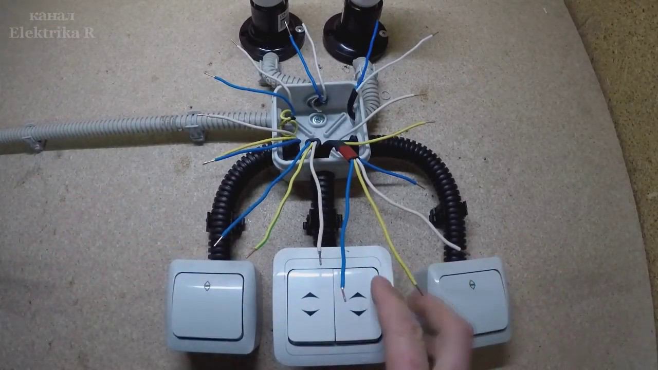 Показываю схему как подключить проходные выключатели одно и двухклавишные.