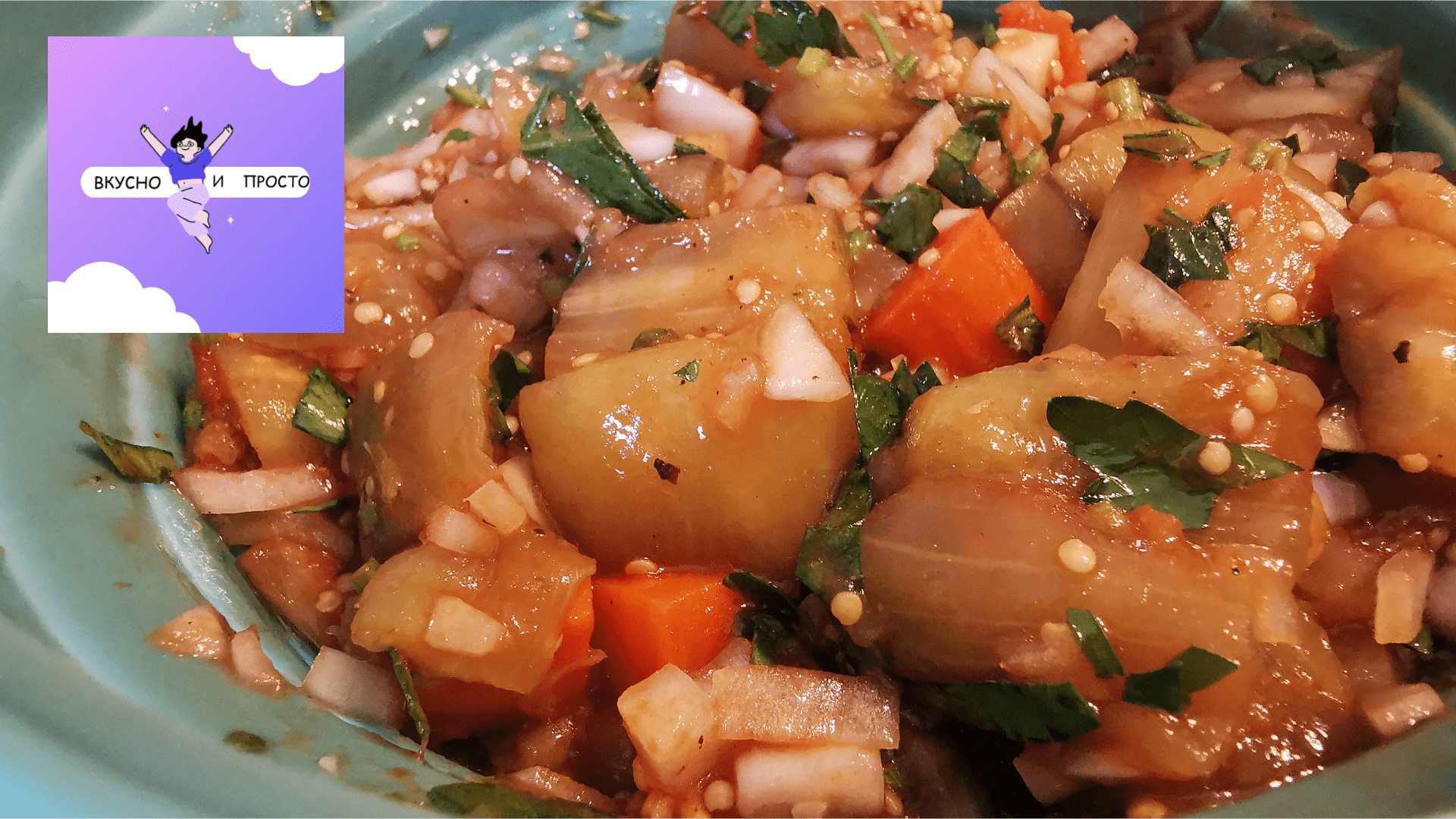 Просто и Вкусно можно приготовить закуску из баклажанов,которая похожа на соленые грибу.Для эксперимента добавила немного моркови,она напоминает "грибы подберезовики". -Вымытые баклажаны,морковь нарезать брусочками по 1,5-2 см. -В специальной посуде для СВЧ приготовить овощи до готовности,ориентируйтесь на свою печь.Добавить 50 мл воды для быстрого приготовления овощей. Я готовлю 5-7 мин 800 Вт. -Измельчить репку-лук,зеленый лук,петрушку,чеснок. -Слить воду от баклажан,в горячие овощи добавить зелень,лук,присолить по вкусу,добавить кетчуп или томатный соус.Мой выбор соуса это краснодарский.Соус сбалансирован пряностями и кислотой. Добавить ароматное растительное масло.Перемешать. -Желательно выдержать баклажаны ночь в холодильнике.