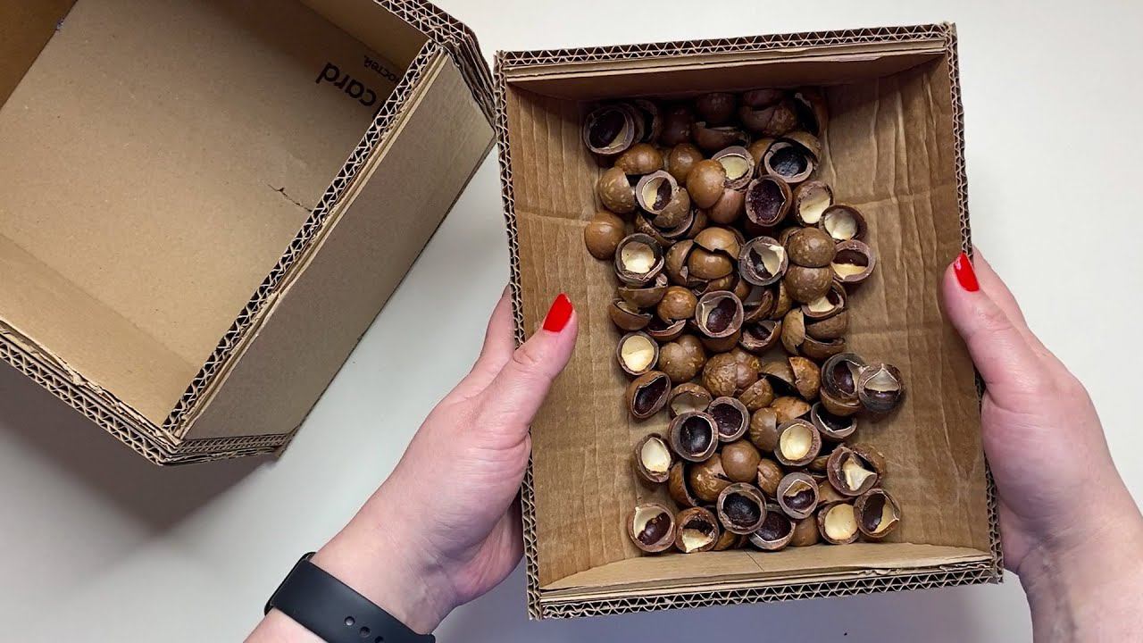 DIY Beautiful box made of cardboard and paper | Papier mache and macadamia nuts