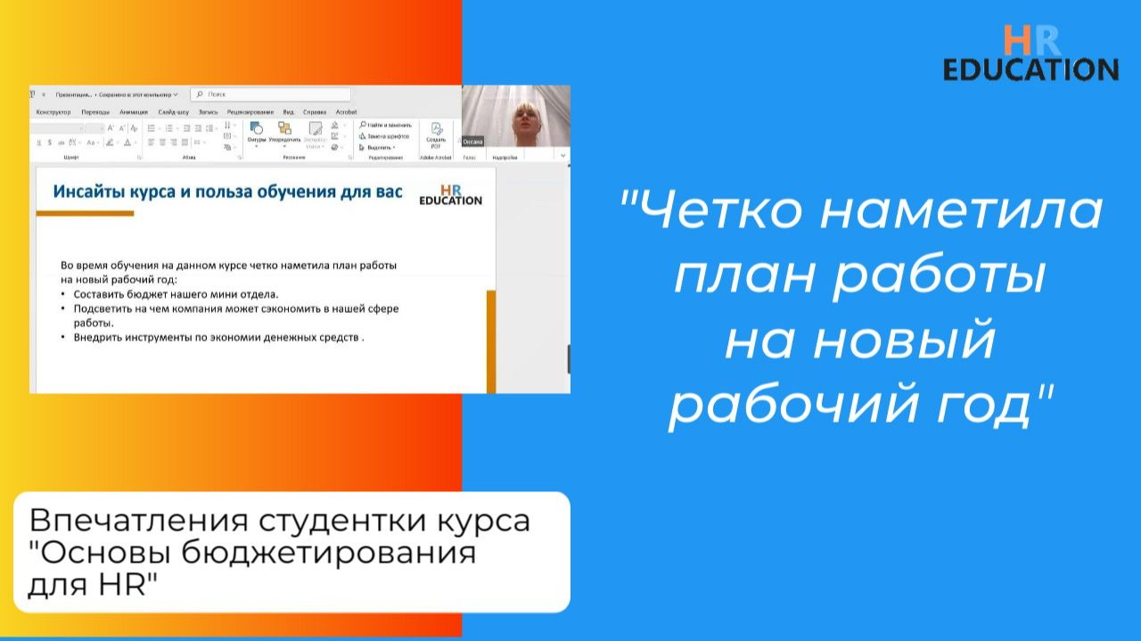 Впечатления Агрызковой Оксаны, студентки курса "Основы бюджетирования для HR"