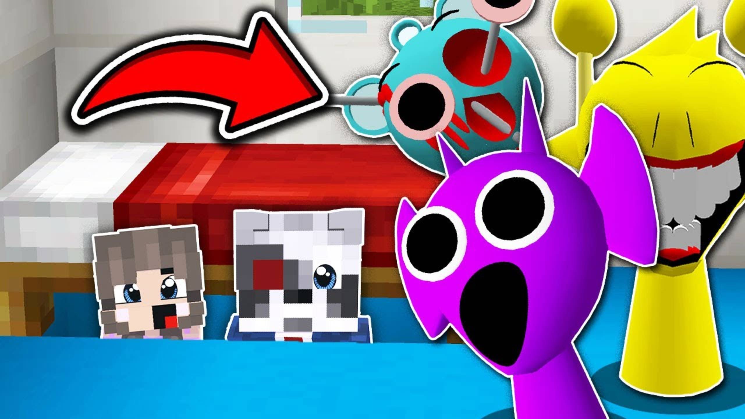 СПРУНКИ НАШЛИ НУБ И ПРО ПОД КРОВАТЬЮ В МАЙНКРАФТ Фильм Ракун и Дочка Incredibox Sprunki