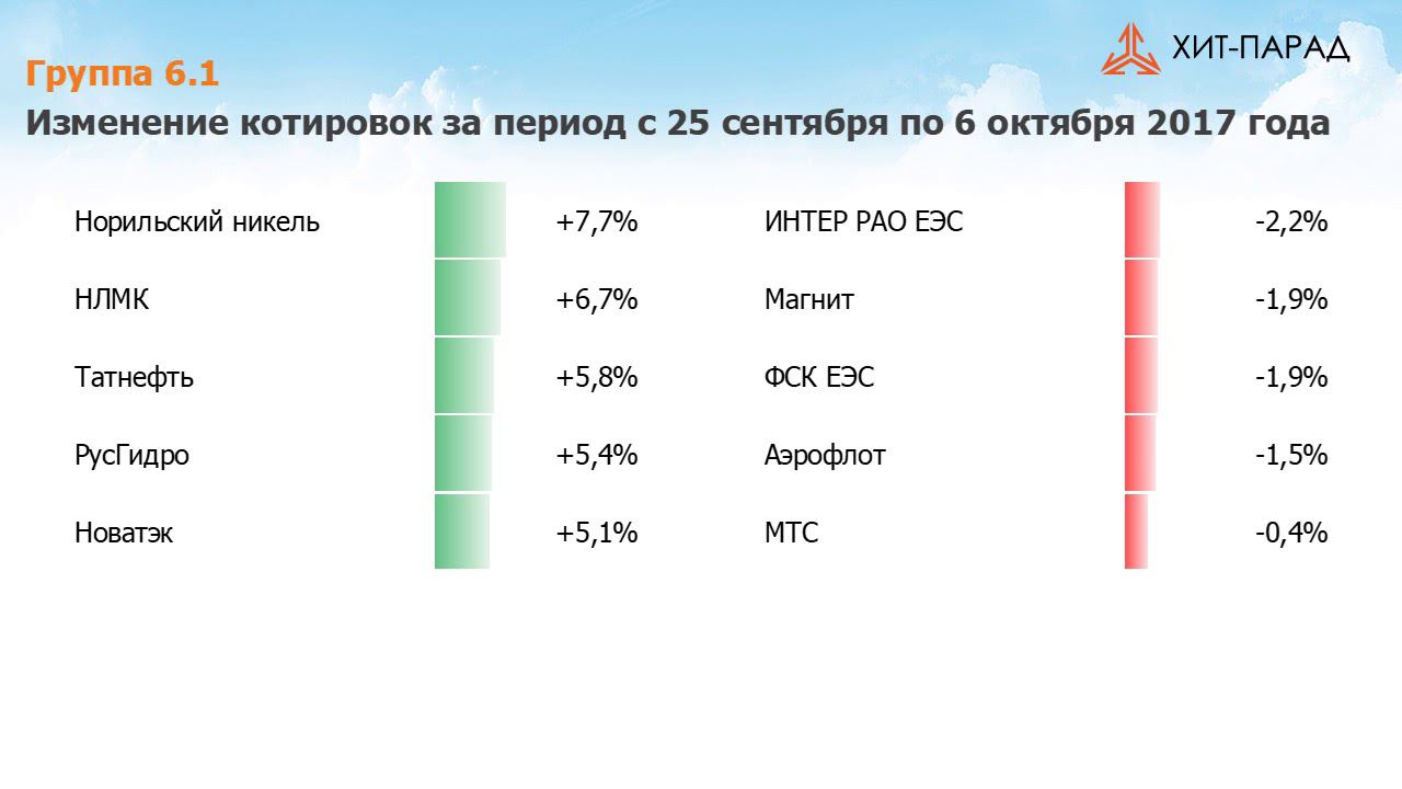 Аналитика по акциям. Хит-парад #110 на 06.10.2017