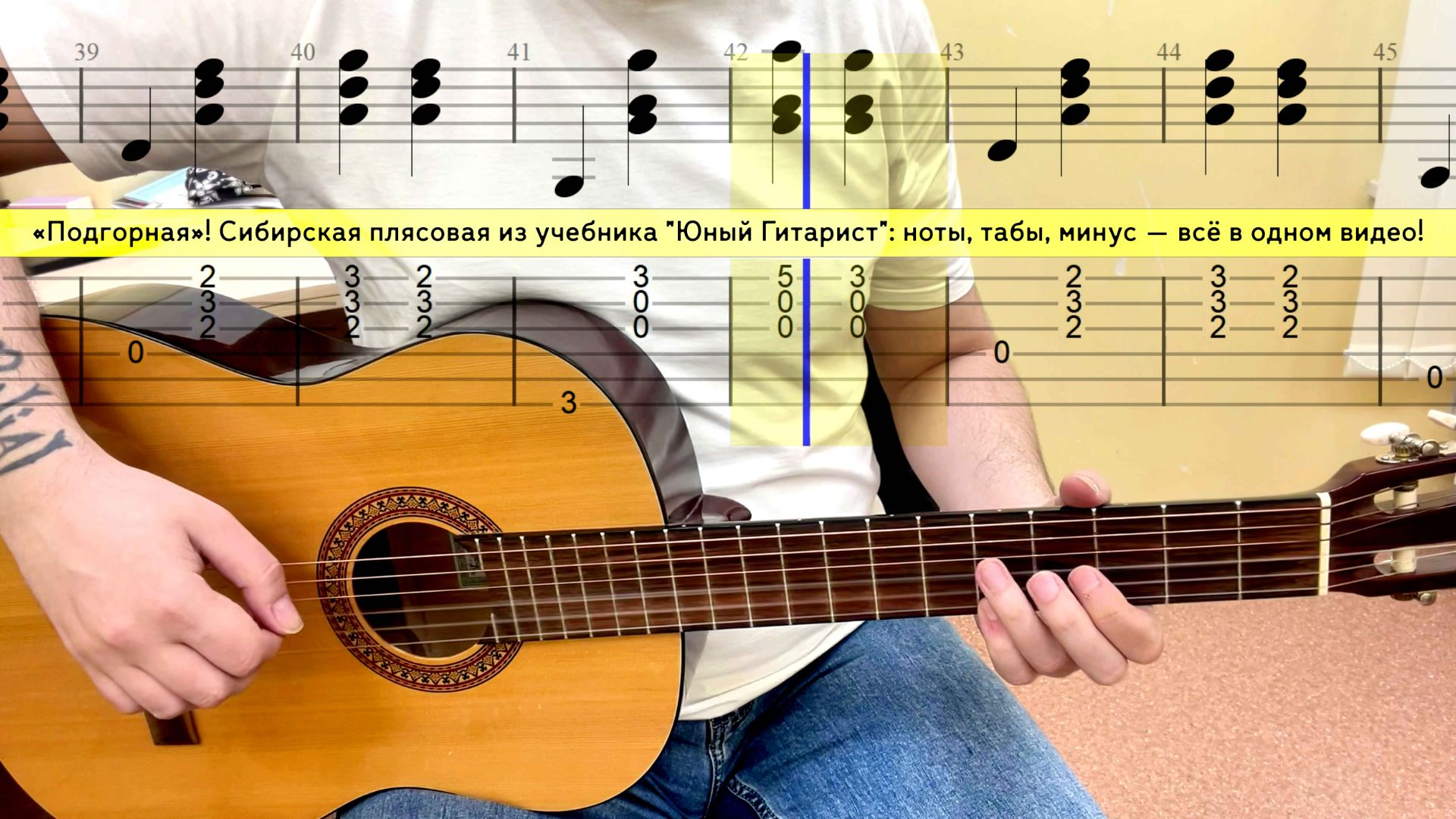 «Подгорная»! Сибирская плясовая из учебника "Юный Гитарист": ноты, табы, минус — всё в одном видео!