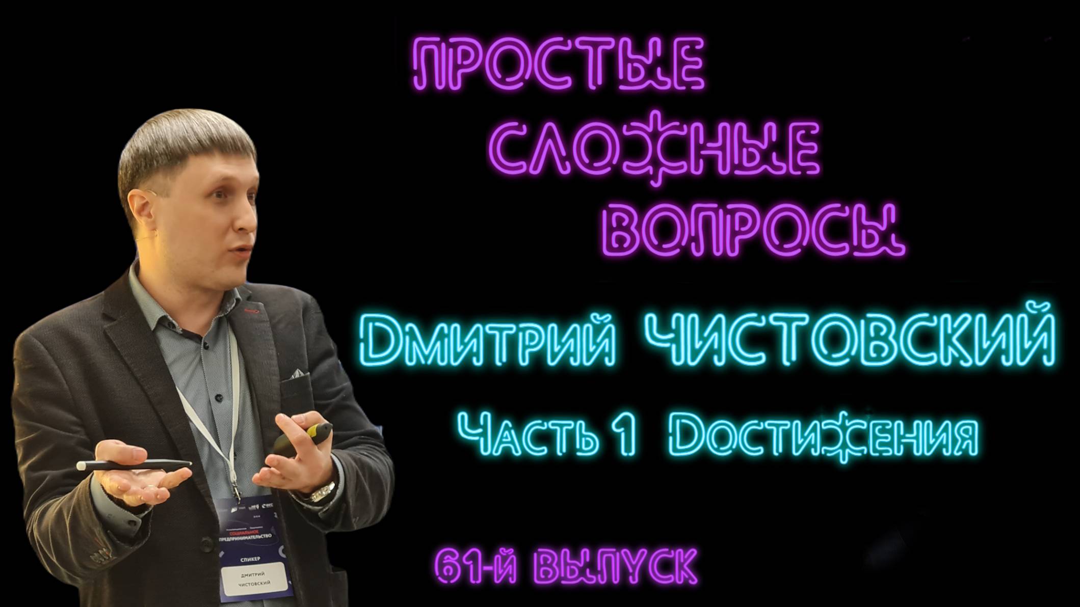 ПРОСТЫЕ СЛОЖНЫЕ ВОПРОСЫ Выпуск №61 Вопросы, которые не часто звучат в обычной жизни, но позволяющие во время душевных бесед в зум-гостиной узнать о человеке больше. Что за каждым успехом и публичностью всегда скрывается человечность. Для общения и по жизни людям нужны люди. Гость шестьдесят первого выпуска – Дмитрий Чистовский – руководитель тренингового центра по ораторскому искусству LAB Voice Часть 1-я – Достижения Посмотрев этот выпуск, вы узнаете: - о том, как заработал свои первые деньги и на что их потратил, - о том, как устроился на работу учась в институте, - о первых шагах самостоятельного бизнеса, - практически алгоритм запуска стартапа, - про успех и достижения. Продолжение следует... Об условиях участия в проекте и о размещении рекламы – wiseservice@yandex.ru t.me/SergeyGribakin Вы можете поддержать канал своими деньгами https://yoomoney.ru/to/410016453390755 Заранее благодарю. Все собранные средства будут направлены на обустройство видеостудии.