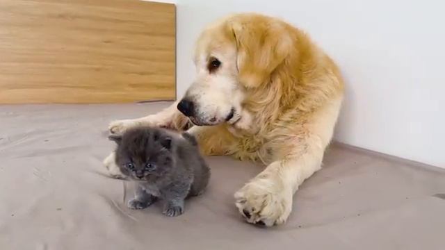 Что делает спасенный котенок, когда видит спящего золотистого ретривера