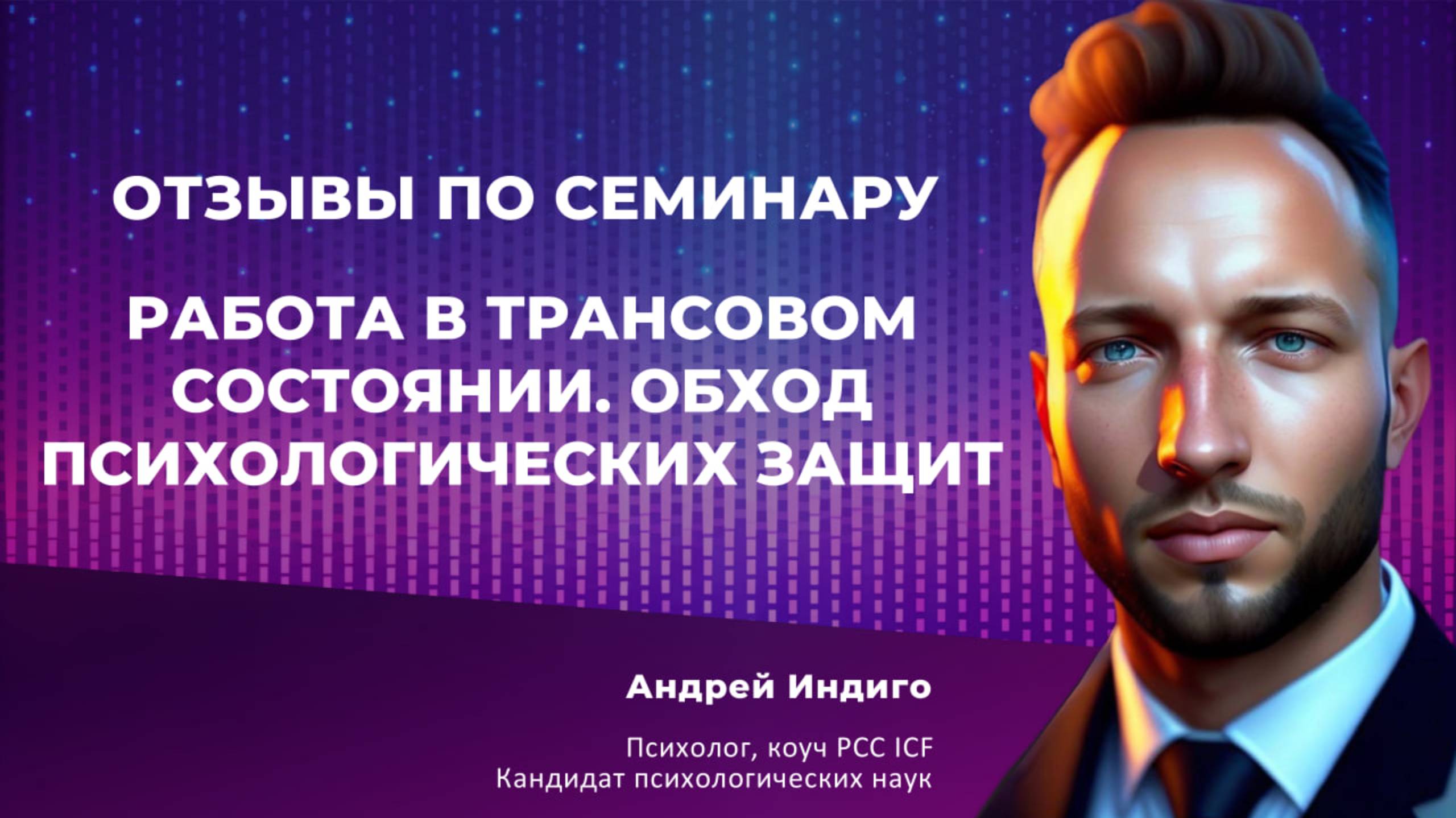 Ссылка на семинар "Работа в трансовом состоянии. Обход психологических защит" - https://andreyindigo.com/seminar6 Узнать подробнее и записаться семинар: http://t.me/Indigopeople_assistant Записаться на личную диагностическую сессию: https://andreyindigo.com Закрытая группа "Практика на миллион" для психологов и коучей: https://t.me/+hlCZO6w-hBoyZTYy Подписывайтесь на мои социальные сети: Телеграм: https://t.me/AndreyIndigo INST: https://www.instagram.com/andrey.indigo/ ВК: https://vk.com/andrey.indigo