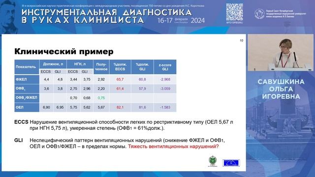 Лектор: Савушкина Ольга Игоревна, к.б.н., заведующая отделением исследований функции внешнего дыхания центра функционально-диагностических исследований ФГБУ «Главный военный клинический госпиталь имени академика Н. Н. Бурденко» МО РФ, старший научный сотрудник лаборатории функциональных и ультразвуковых методов исследования «НИИ пульмонологии» ФМБА России, Москва