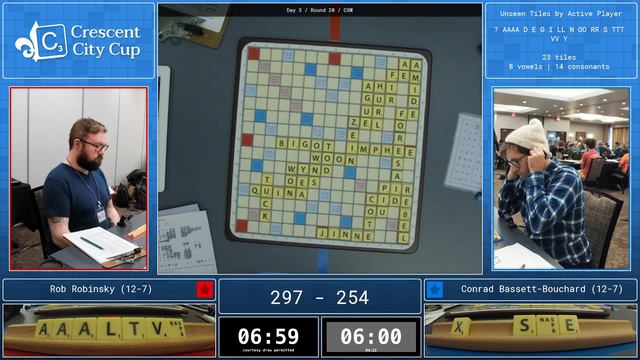 2023 Crescent City Cup Scrabble, Round 20 Rob Robinsky vs. Conrad Bassett-Bouchard