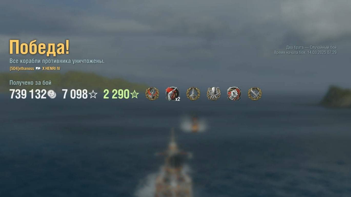 Крейсер Henri IV: +252к урона 6 фрагов на карте Два брата - World of Warships