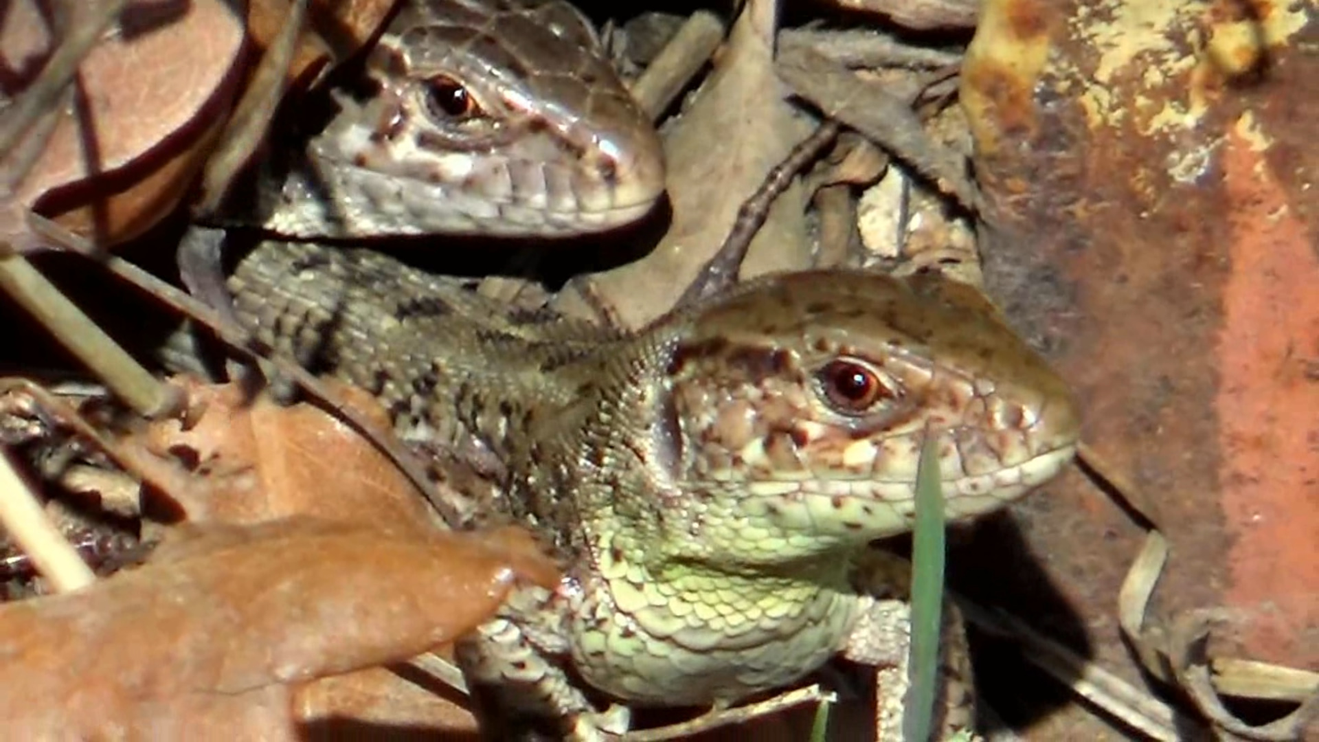 Ящерки греются в лучах весеннего солнца