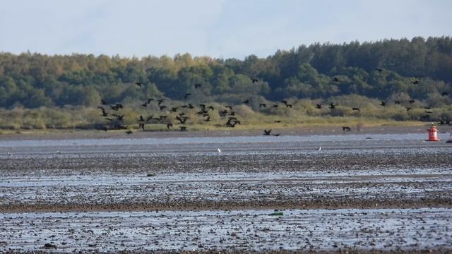 Стая Больших Бакланов, наблюдение птиц, 6 октября 2023, деревня Троица, Новгородская область