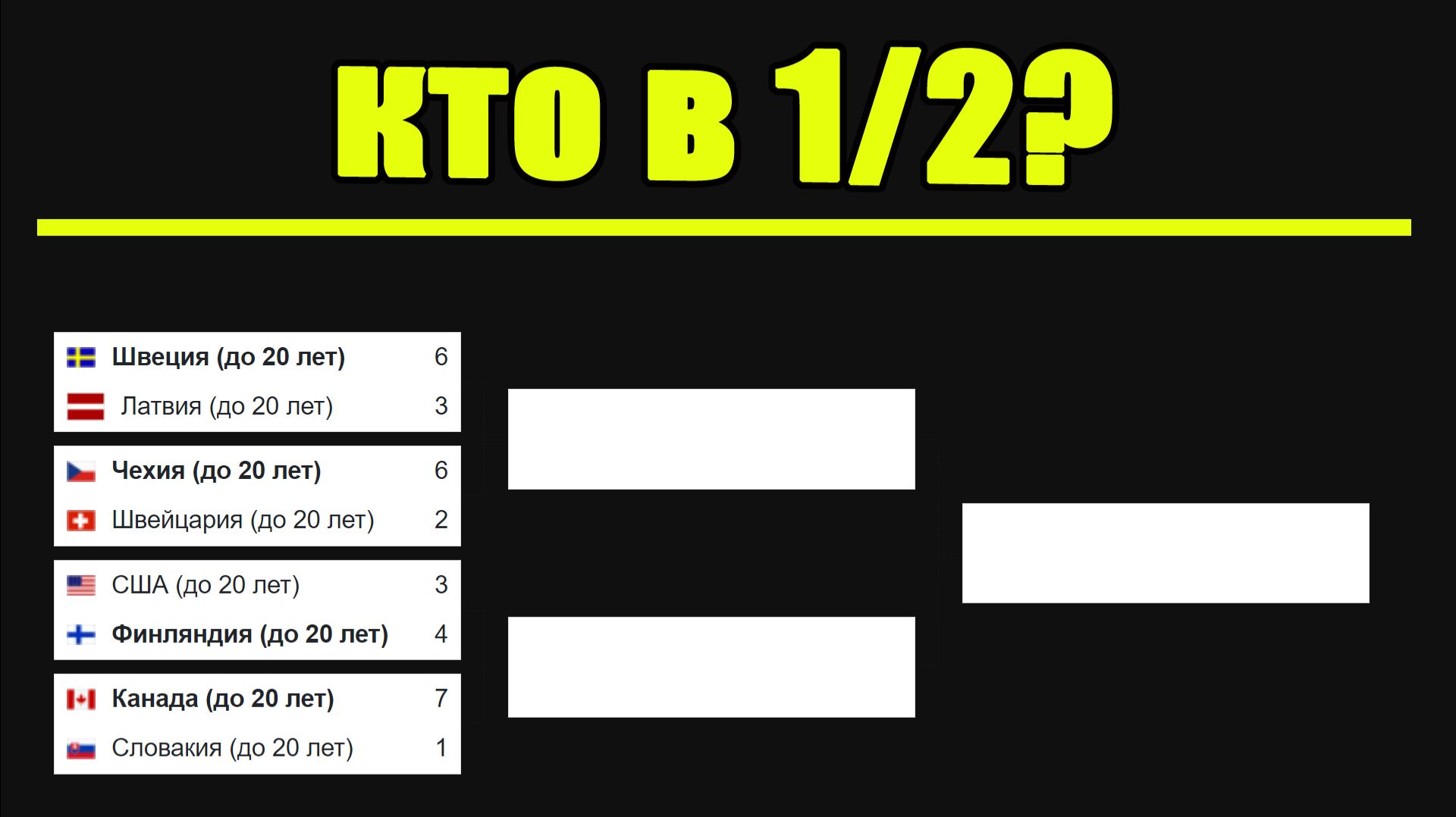 ЧМ по хоккею 2026 (U20). Кто в 1/2? Результаты, Таблицы, Расписание.
