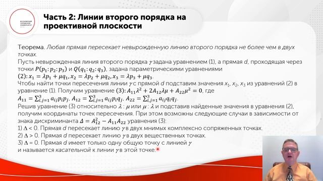 Линии второго порядка на проективной плоскости