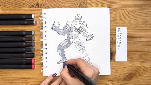 Как нарисовать "Венома" карандашом и скетч маркерами | Рисунок поэтапно и легко