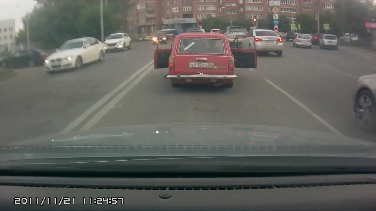 Парни на стареньком автомобиле Ваз, останавливают авто вручную, выйдя из салона, во время движение по дороге. #идиоты #тормоз #ваз