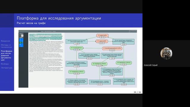 Докладчик: А.С. Серый (ИСИ СО РАН) Тема: "Разработка платформы для исследования аргументации в научно-популярном дискурсе"
