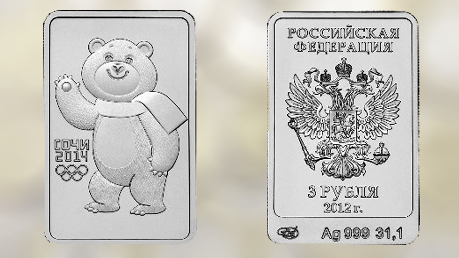 Серебряная монета 3 рубля к олимпиаде в Сочи 2014 "Белый Мишка".